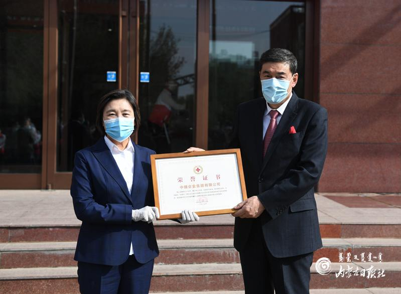 5月8日上午,中植企業(yè)集團(tuán)向內(nèi)蒙古“光明行”等公益項(xiàng)目及疫情防控捐贈(zèng)款物活動(dòng)在呼和浩特舉行。自治區(qū)主席、紅十字會(huì)名譽(yù)會(huì)長(zhǎng)布小林向中植企業(yè)集團(tuán)頒發(fā)榮譽(yù)證書。中植企業(yè)集團(tuán)董事局主席兼首席執(zhí)行官解直錕代表公司接受榮譽(yù)證書。