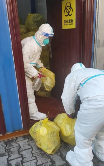 寒冬中有這樣一群人,他們?nèi)粘鐾須w,往返于三區(qū)各大醫(yī)院、隔離酒店、隔離卡點(diǎn)、傳染病醫(yī)院、發(fā)熱門診,穿梭在城區(qū)各大小區(qū),他們?nèi)蔽溲b,身著防護(hù)服,將一袋袋醫(yī)療廢物垃圾,安全轉(zhuǎn)運(yùn)到集中處置點(diǎn),徹底阻斷醫(yī)廢垃圾造成二次感染風(fēng)險(xiǎn),牢牢守住防疫最后一道防線。自從10月初以來,市污水處理公司醫(yī)廢垃圾轉(zhuǎn)運(yùn)組全體工作人員以廠為家、閉環(huán)管理已經(jīng)40余天,他們放棄與家人團(tuán)聚,與親人相伴,日復(fù)一日,兩點(diǎn)一線,晝夜兼程,在醫(yī)廢垃圾安全轉(zhuǎn)運(yùn)戰(zhàn)場(chǎng)上默默付出,逆風(fēng)而行,用行動(dòng)為抗擊疫情、阻斷病毒傳播貢獻(xiàn)自己的力量。
