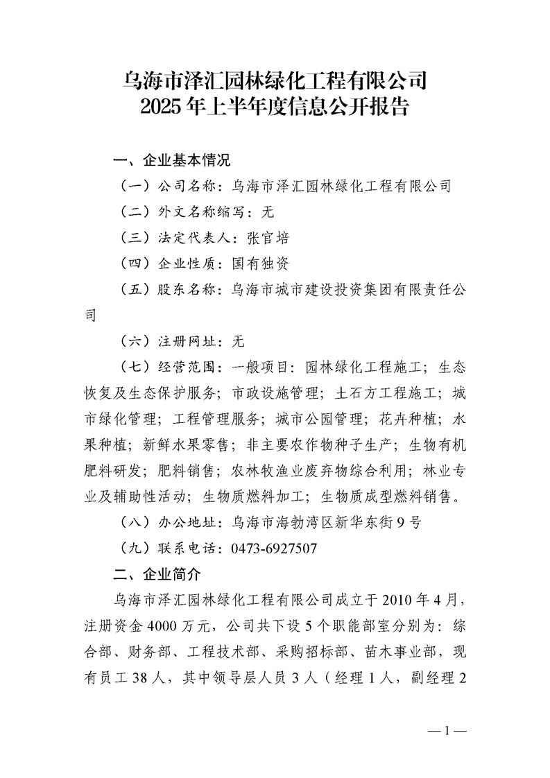 - 2025-03-10烏海市澤匯園林綠化工程有限公司2024年度信息公開(kāi)報(bào)告