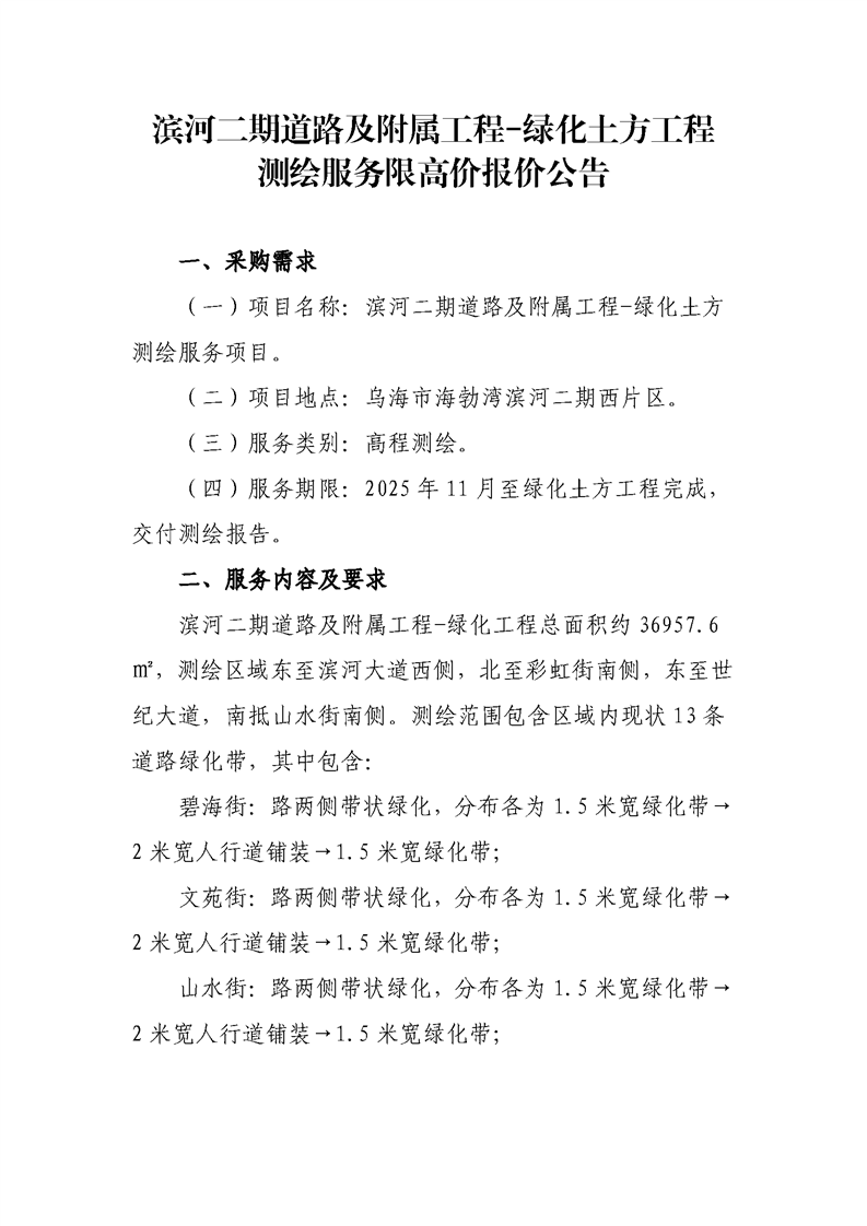 濱河二期道路及附屬工程-綠化土方工程測(cè)繪服務(wù)限高價(jià)報(bào)價(jià)公告