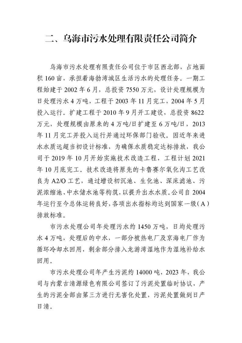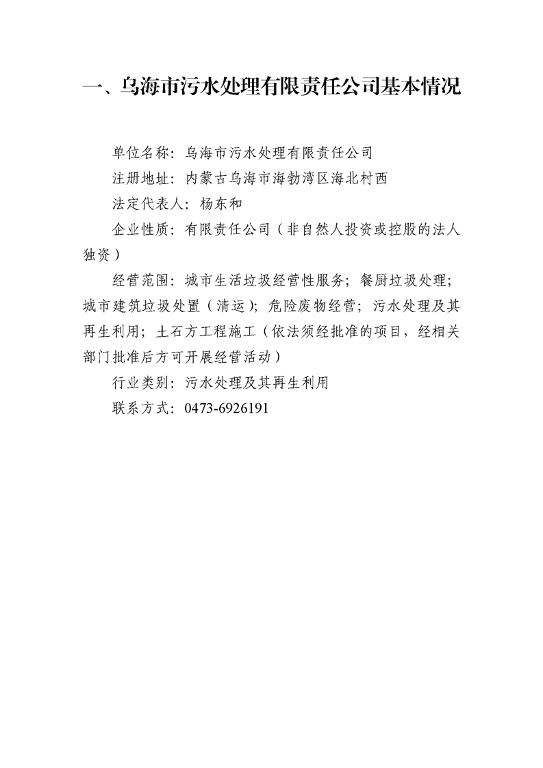 - 2025-04-10烏海市污水處理有限責(zé)任公司2024年度信息公開報告