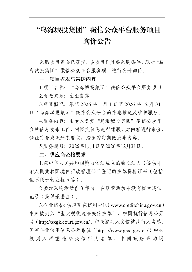 - 2025-09-17烏海市濱河城市運營服務(wù)有限責任公司廣告設(shè)計、制作、安裝服務(wù)商采購詢價文件